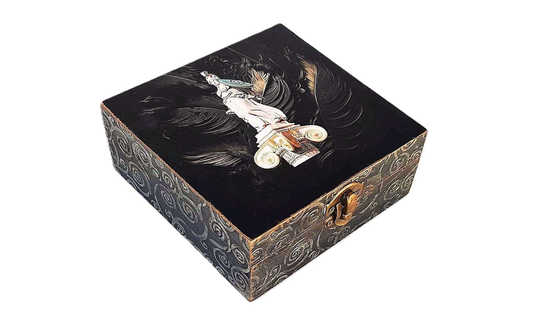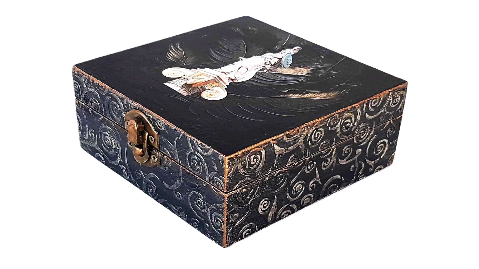Ξύλινο μικρό κουτί 100% χειροποίητο φιλοτεχνημένο με μικτές τεχνικές, ακρυλικά χρώματα, βερνίκι, χαρτί, πάστες, πηλό κλπ δουλεμένο με αγάπη ,φαντασία και λεπτομέρεια μέσα και έξω. Ιδανικό για εσάς ή ένα μοναδικό δώρο που θα εκτιμηθεί δεόντως.