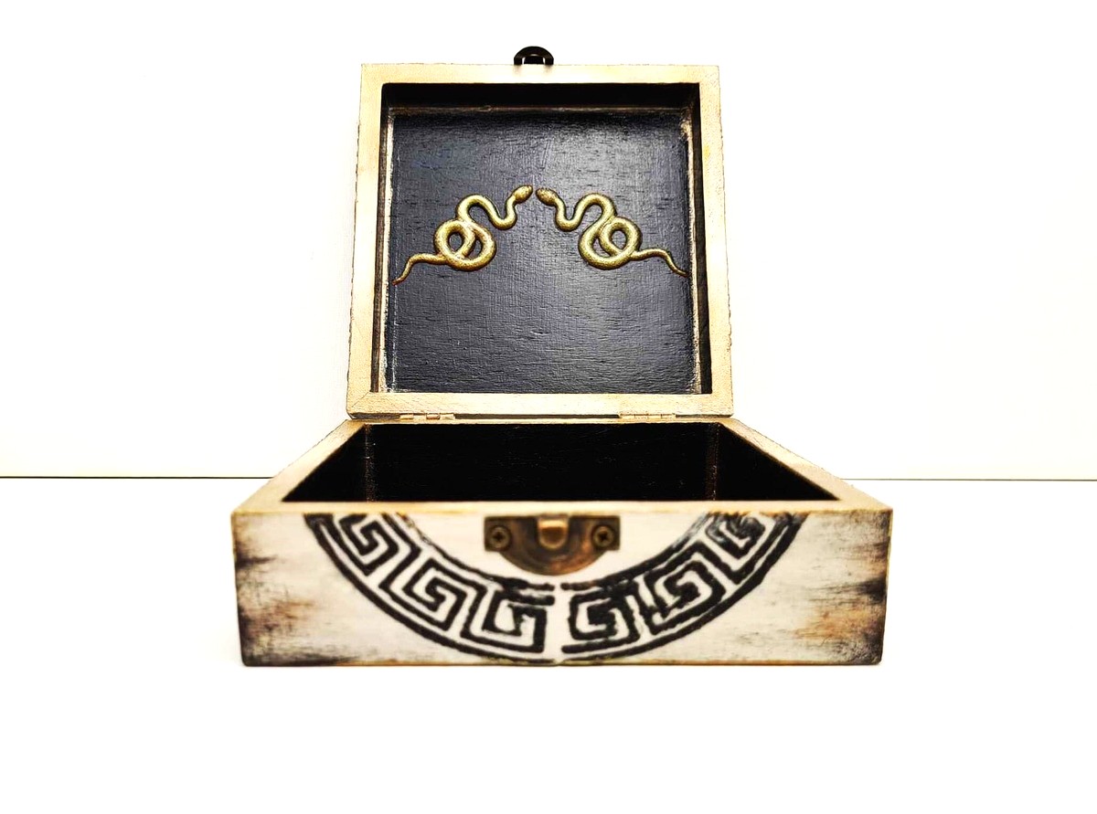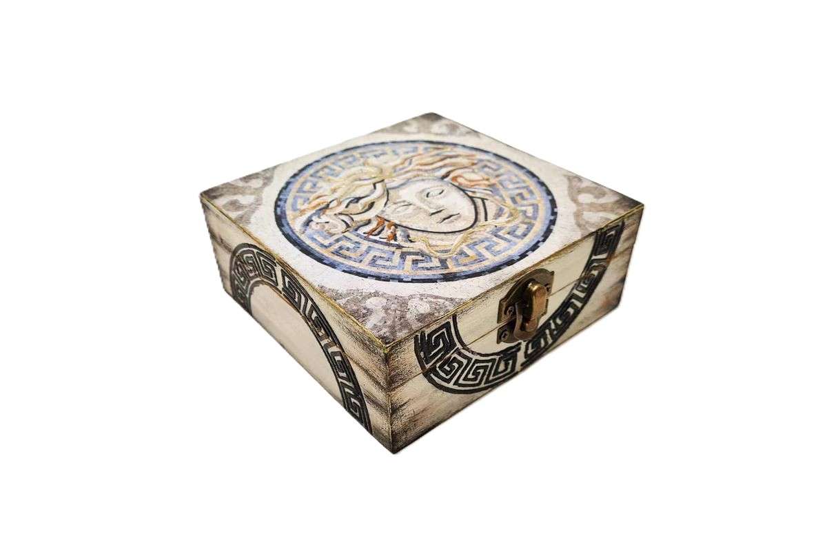 Χειροποίητη κοσμηματοθήκη με το κεφάλι της Μέδουσας από την Αρχαιοελληνική Μυθολογία.