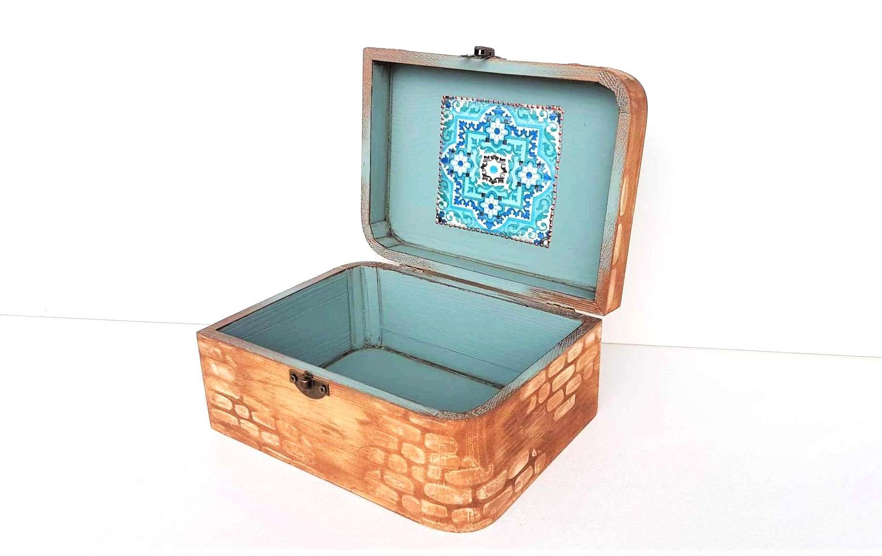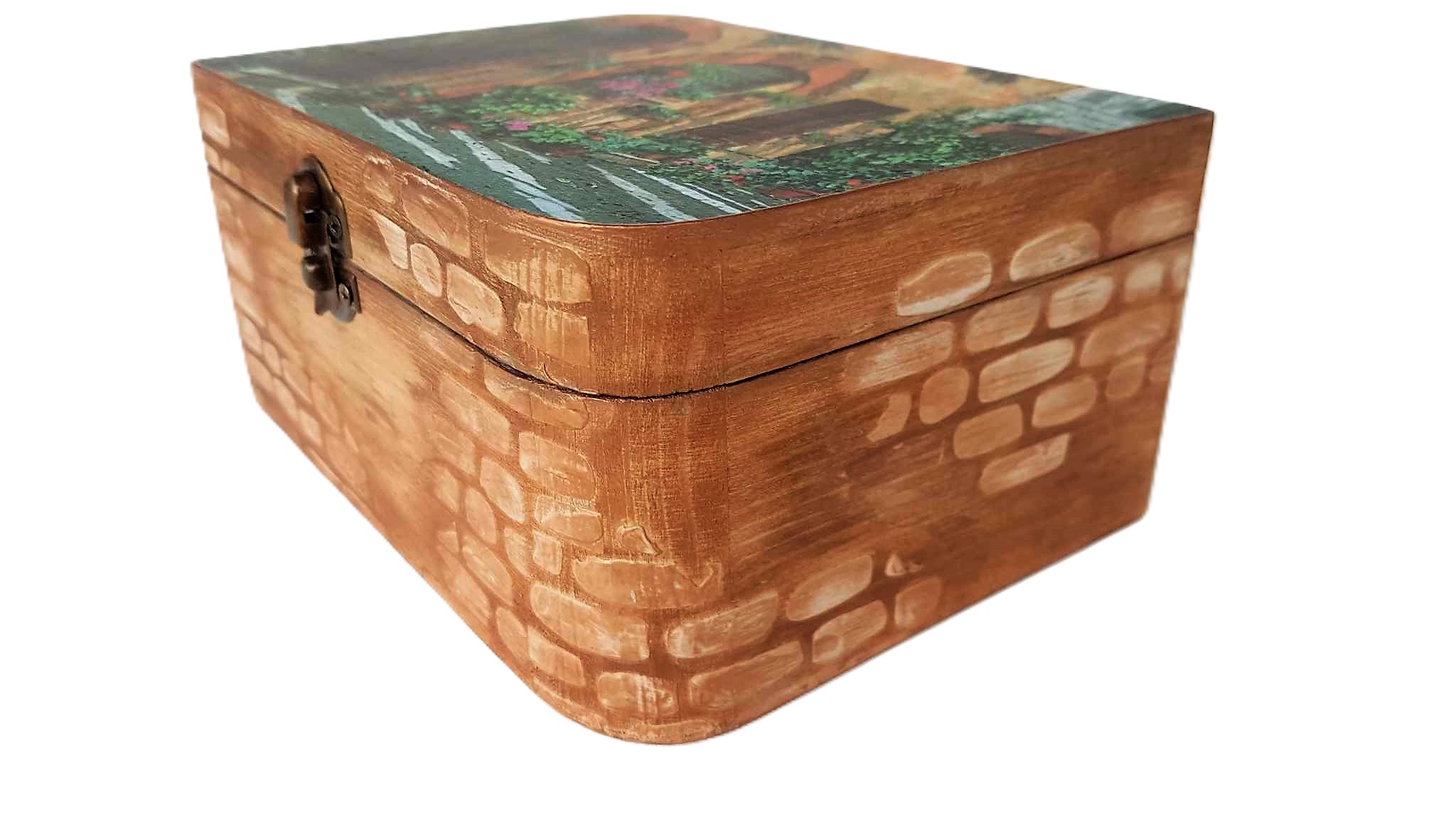 Ξύλινο κουτί φιλοτεχνημένο με μικτές τεχνικές, ακρυλικά χρώματα, βερνίκι, χαρτί, πάστες, πηλό κλπ δουλεμένο με αγάπη και λεπτομέρεια μέσα και έξω. Ιδανικό για εσάς ή ένα μοναδικό δώρο που θα εκτιμηθεί δεόντως.