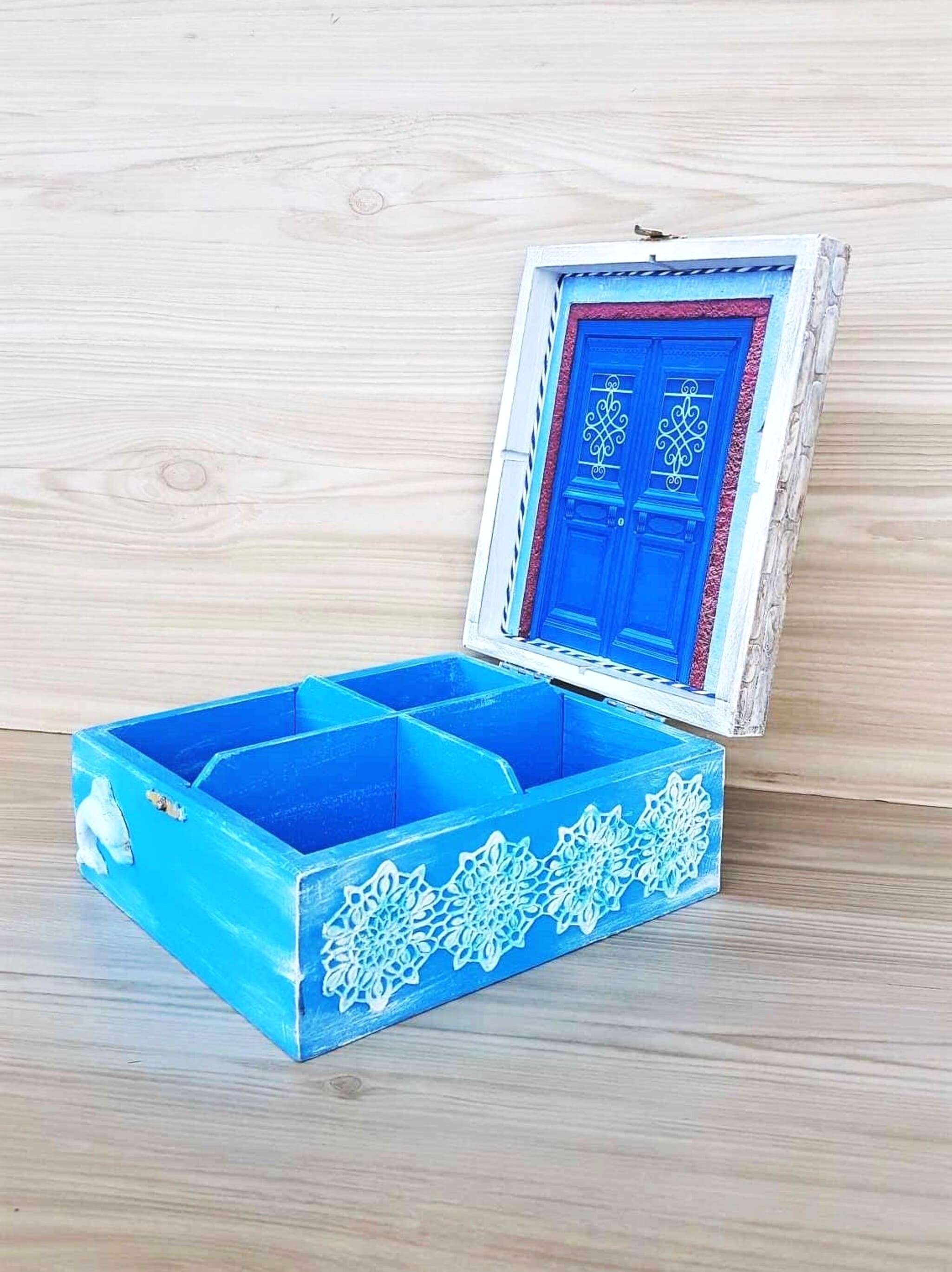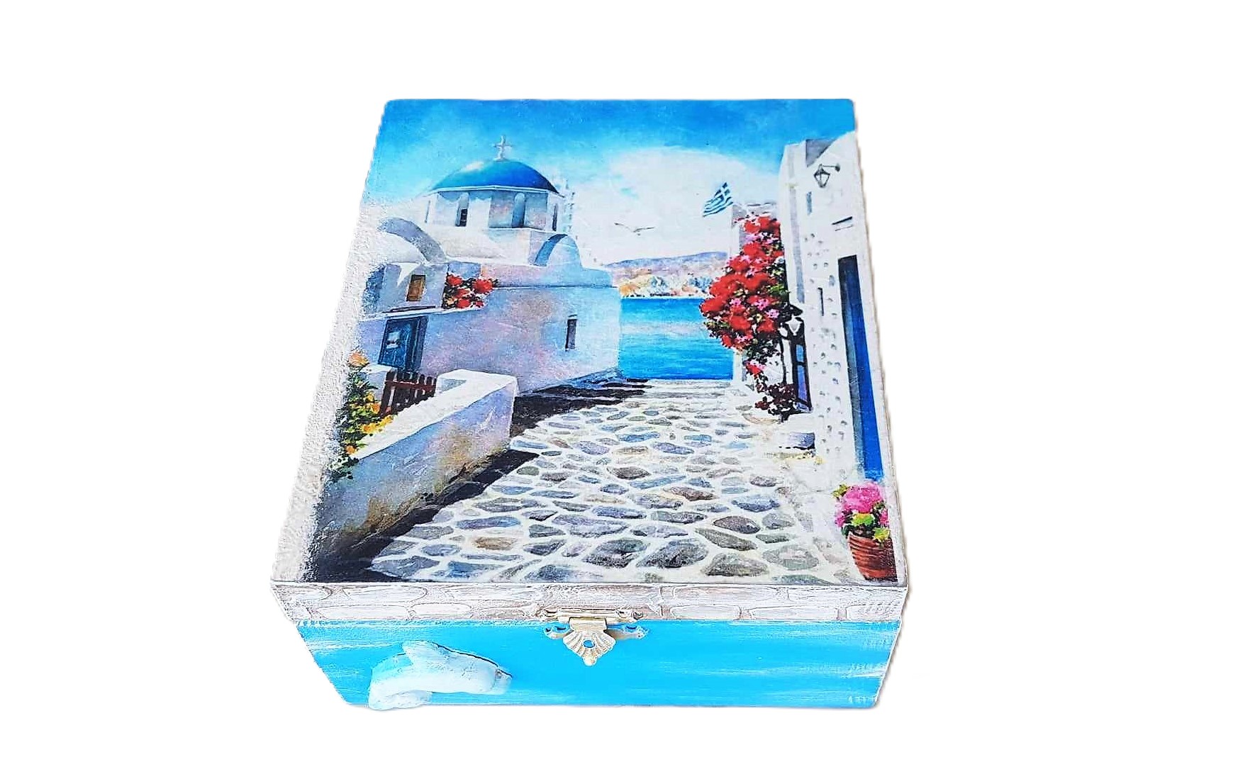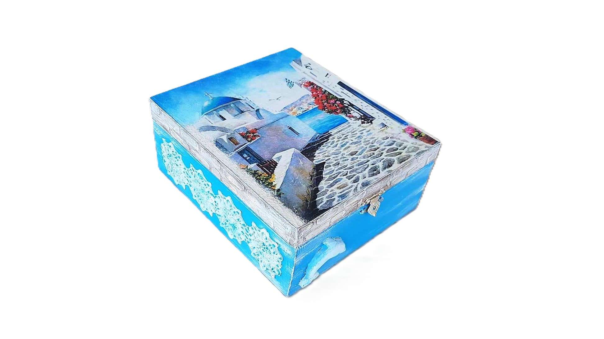 Κουτί φιλοτεχνημένο με μικτές τεχνικές, ακρυλικά χρώματα, βερνίκι, χαρτί, πάστες, πηλό κλπ δουλεμένο με αγάπη και λεπτομέρεια μέσα και έξω. Ιδανικό για εσάς ή ένα μοναδικό χειροποίητο δώρο που θα εκτιμηθεί δεόντως.