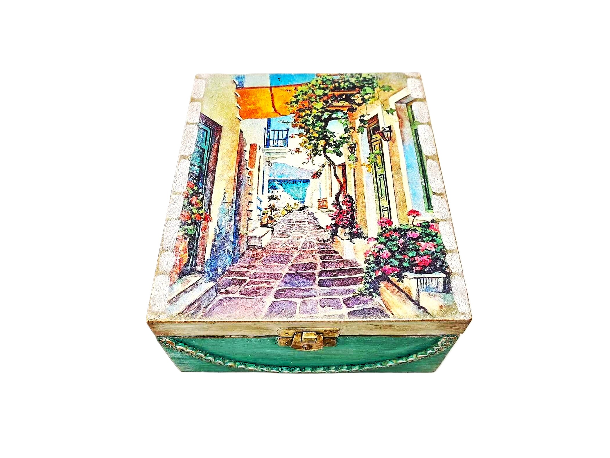 Ξύλινο κουτί φιλοτεχνημένο με μικτές τεχνικές, ακρυλικά χρώματα, βερνίκι, χαρτί, πάστες, πηλό όλα τους υλικά φιλικά προς το περιβάλλον και δουλεμένο με αγάπη και λεπτομέρεια μέσα και έξω. Ιδανικό για εσάς ή ένα μοναδικό χειροποίητο δώρο που θα εκτιμηθεί δεόντως.