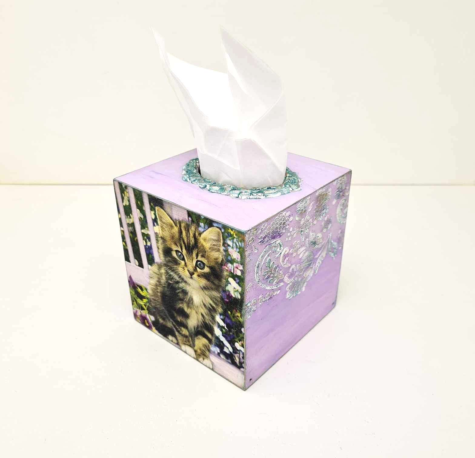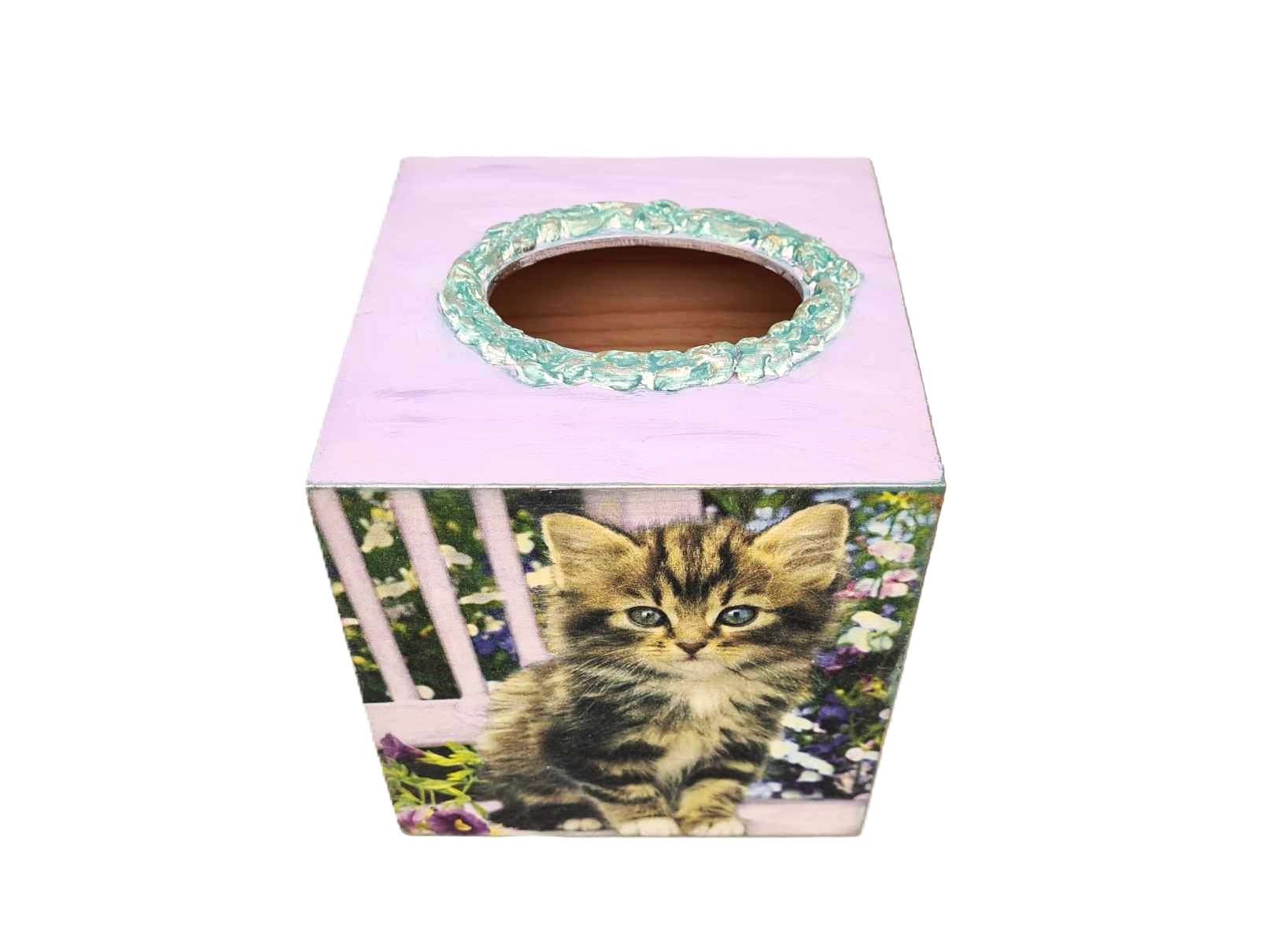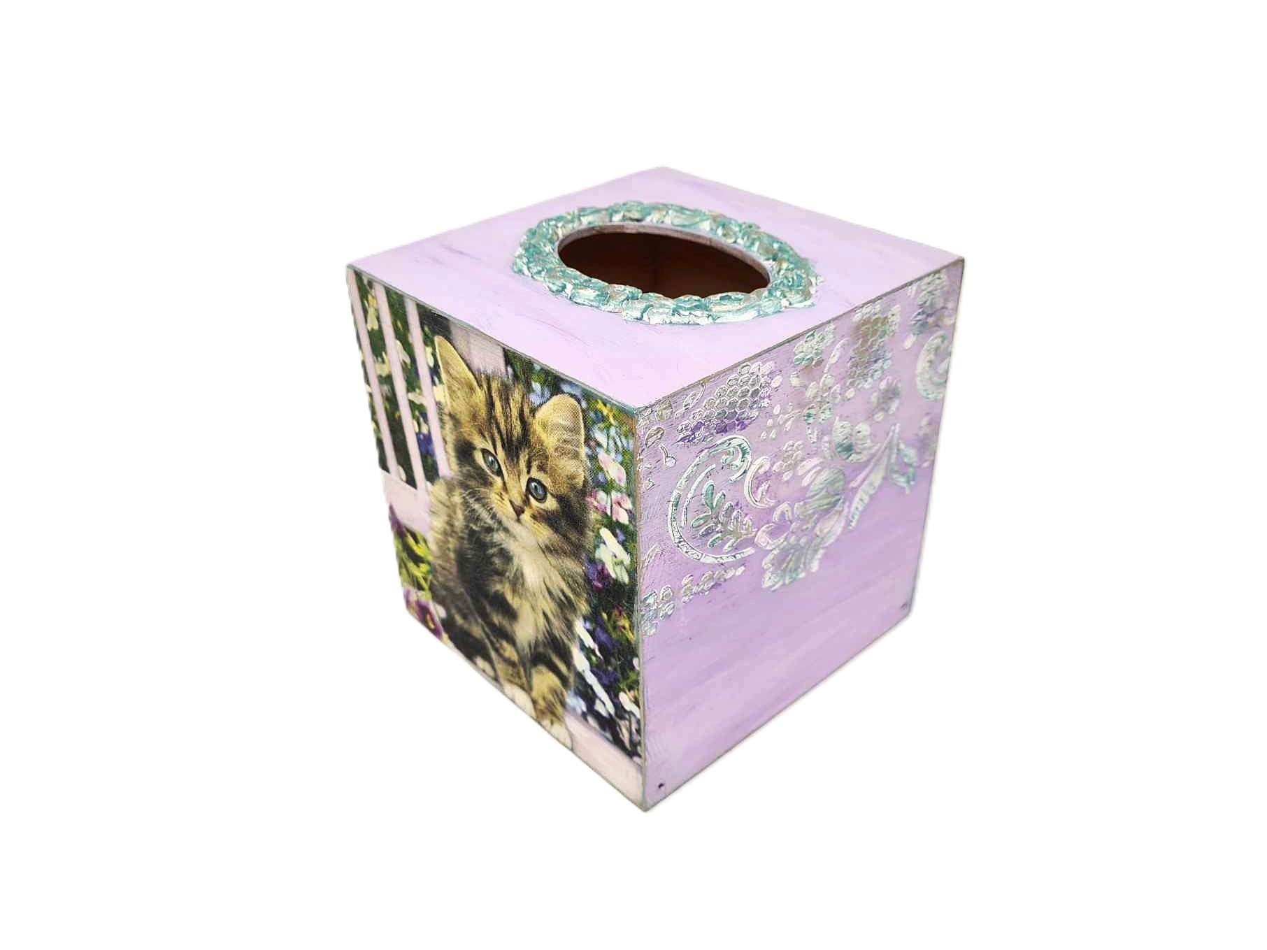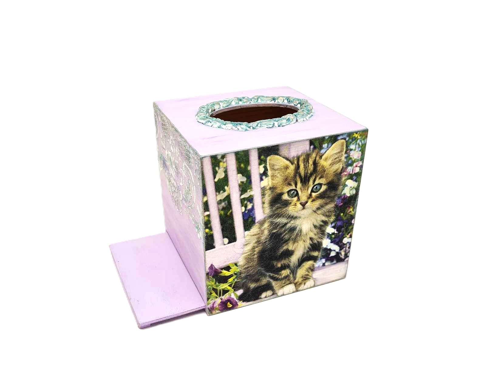 Πολύχρωμο και χαριτωμένο κουτί για χαρτομάντηλα φιλοτεχνημένο με μικτές τεχνικές, ακρυλικά χρώματα, βερνίκι, χαρτί, πάστες κλπ δουλεμένο με αγάπη και με λεπτομέρεια σε όλες τις πλευρές του. Εσωτερικά παραμένει στο φυσικό χρώμα ξύλου και από κάτω υπάρχει καπάκι που κλείνει ώστε να είναι εύκολη η μεταφορά του κουτιού. Ιδανικό για εσάς ή ένα μοναδικό χειροποίητο δώρο για μικρούς και μεγάλους.